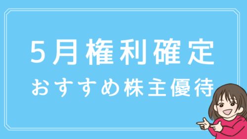今回は、5月に権利確定日を迎える銘柄の中から、おすすめの銘柄を厳選して紹介していきます。 5月に権利確定日を迎える銘柄の数は、39銘柄と少なめですが、食品や買い物券がもらえる人気の優待もあるのでチェックしてみてください♪ ※株価・利回り・優待情報…
